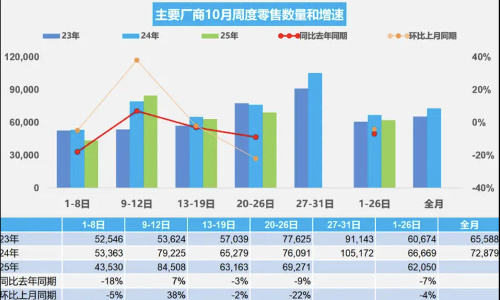 10月29日,乘联会发布10月1-26日销量数据:当期乘用车市场短期回调但累计增长,新能源渗透率超55%,成核心支撑。
