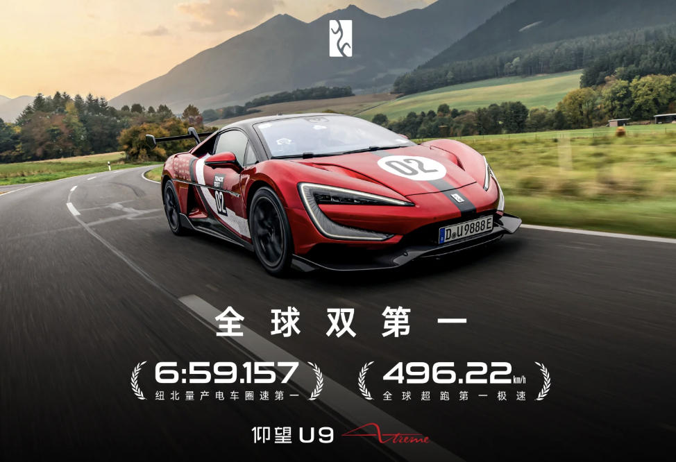 据悉,仰望 U9 Xtreme 于 9 月 20 日正式发布,这款新车正是此前品牌预告的 U9 赛道版本。在性能表现上,该车此前已在德国 ATP 测试场创下 496.22km/h 的最高时速,打破全球纯电极速纪录;此次纽北北环赛道首测,又以 6:59.157 的成绩再添一项纪录,且该车型全球限量发售仅 30 台。